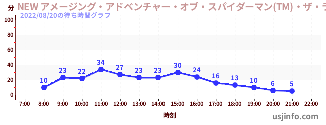 • NEW アメージング・アドベンチャー・オブ・スパイダーマン(TM)・ザ・ライド 4K3D$B$N(B2022年08月20日の待ち時間
