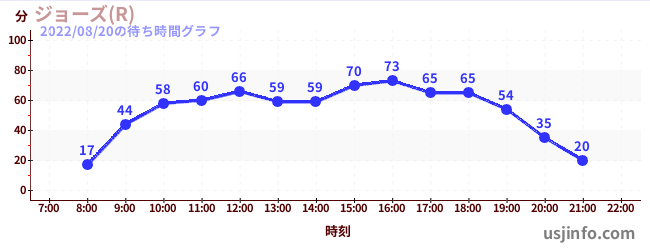 • ジョーズ(R)$B$N(B2022年08月20日の待ち時間