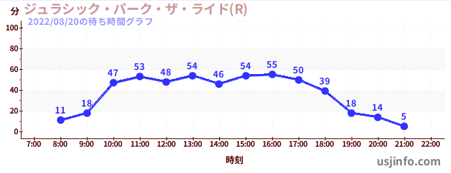 • ジュラシック・パーク・ザ・ライド(R)$B$N(B2022年08月20日の待ち時間
