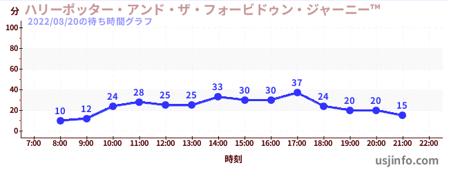 • ハリーポッター・アンド・ザ・フォービドゥン・ジャーニー™$B$N(B2022年08月20日の待ち時間