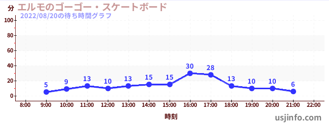 • エルモのゴーゴー・スケートボード$B$N(B2022年08月20日の待ち時間