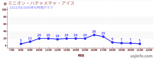 • ミニオン・ハチャメチャ・ライド$B$N(B2022年08月20日の待ち時間
