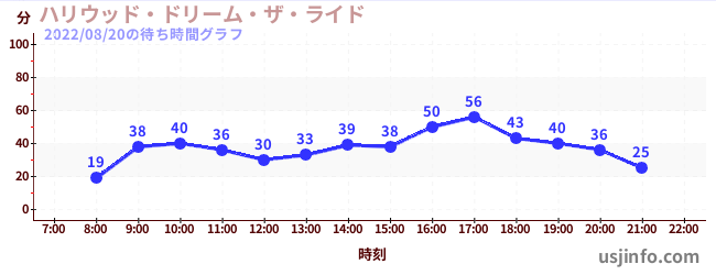 • ハリウッド・ドリーム・ザ・ライド$B$N(B2022年08月20日の待ち時間