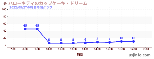• ハローキティのカップケーキ・ドリーム$B$N(B2022年08月27日の待ち時間