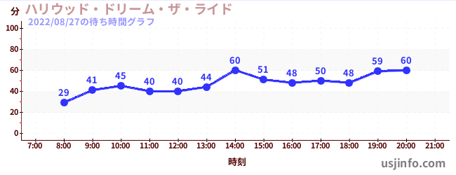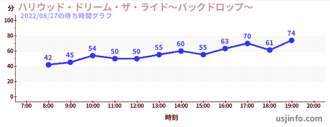 • ハリウッド・ドリーム・ザ・ライド〜バックドロップ〜$B$N(B2022年08月27日の待ち時間