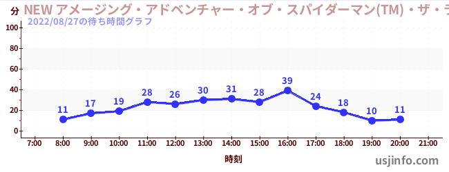 • NEW アメージング・アドベンチャー・オブ・スパイダーマン(TM)・ザ・ライド 4K3D$B$N(B2022年08月27日の待ち時間