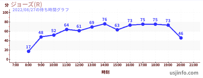 • ジョーズ(R)$B$N(B2022年08月27日の待ち時間