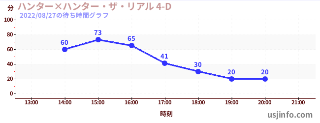 • ハリウッド・ドリーム・ザ・ライド$B$N(B2022年08月27日の待ち時間