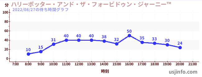 • ハリーポッター・アンド・ザ・フォービドゥン・ジャーニー™$B$N(B2022年08月27日の待ち時間