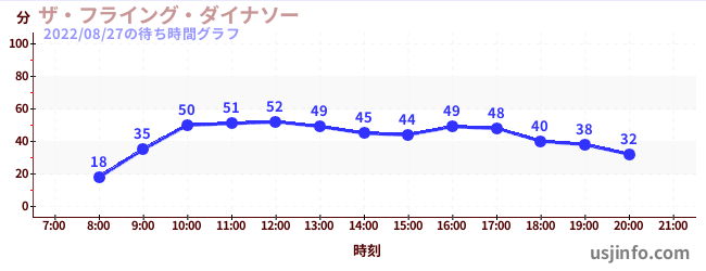 • ザ・フライング・ダイナソー$B$N(B2022年08月27日の待ち時間