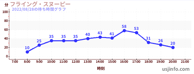 • フライング・スヌーピー$B$N(B2022年08月28日の待ち時間
