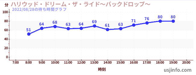 • ハリウッド・ドリーム・ザ・ライド〜バックドロップ〜$B$N(B2022年08月28日の待ち時間