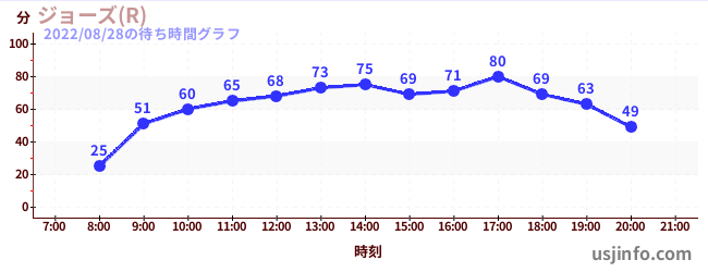 • ジョーズ(R)$B$N(B2022年08月28日の待ち時間