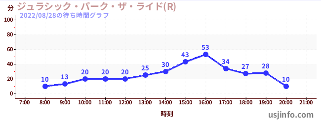 • ジュラシック・パーク・ザ・ライド(R)$B$N(B2022年08月28日の待ち時間
