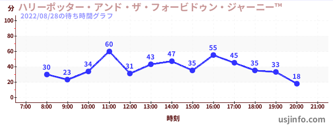 • ハリーポッター・アンド・ザ・フォービドゥン・ジャーニー™$B$N(B2022年08月28日の待ち時間