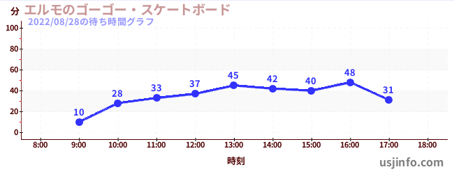 • エルモのゴーゴー・スケートボード$B$N(B2022年08月28日の待ち時間