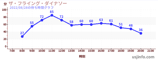 • ザ・フライング・ダイナソー$B$N(B2022年08月28日の待ち時間
