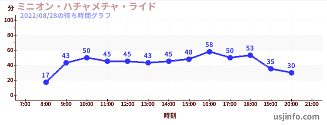 • ミニオン・ハチャメチャ・ライド$B$N(B2022年08月28日の待ち時間