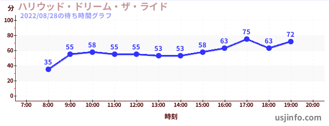 • ハリウッド・ドリーム・ザ・ライド$B$N(B2022年08月28日の待ち時間