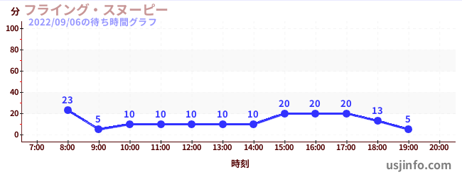 • フライング・スヌーピー$B$N(B2022年09月06日の待ち時間