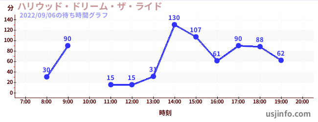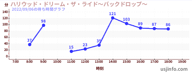 • ハリウッド・ドリーム・ザ・ライド〜バックドロップ〜$B$N(B2022年09月06日の待ち時間