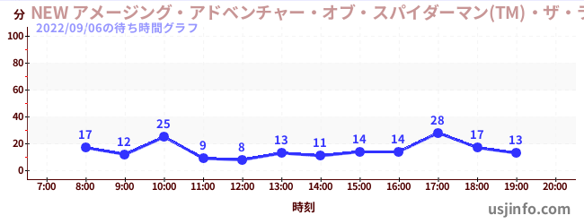 • NEW アメージング・アドベンチャー・オブ・スパイダーマン(TM)・ザ・ライド 4K3D$B$N(B2022年09月06日の待ち時間