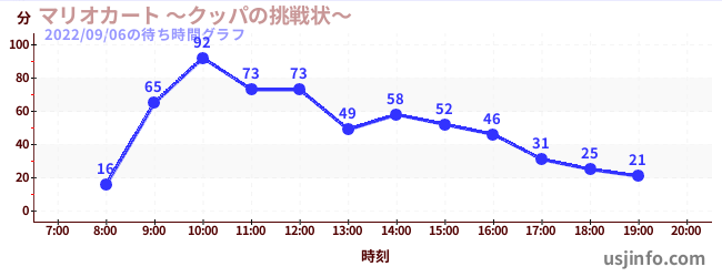 • マリオカート ~クッパの挑戦状~$B$N(B2022年09月06日の待ち時間