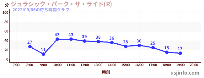 • ジュラシック・パーク・ザ・ライド(R)$B$N(B2022年09月06日の待ち時間