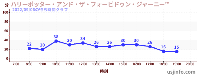 • ハリーポッター・アンド・ザ・フォービドゥン・ジャーニー™$B$N(B2022年09月06日の待ち時間