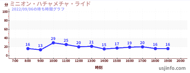• ミニオン・ハチャメチャ・ライド$B$N(B2022年09月06日の待ち時間