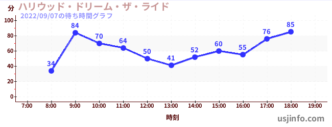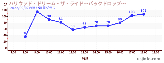 • ハリウッド・ドリーム・ザ・ライド〜バックドロップ〜$B$N(B2022年09月07日の待ち時間