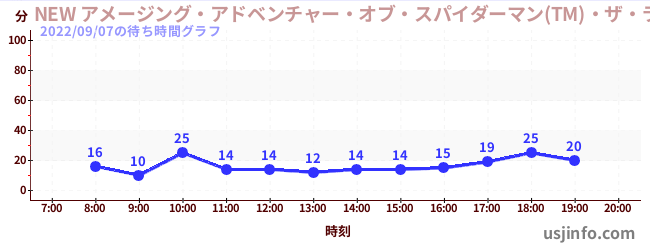 • NEW アメージング・アドベンチャー・オブ・スパイダーマン(TM)・ザ・ライド 4K3D$B$N(B2022年09月07日の待ち時間