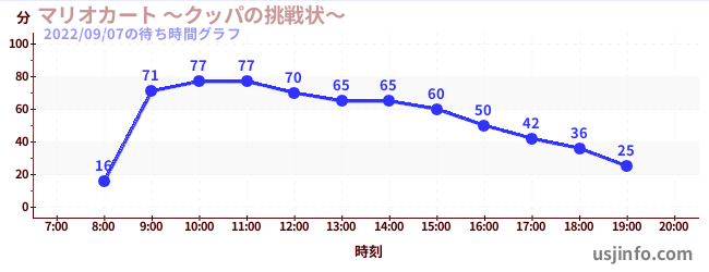 • マリオカート ~クッパの挑戦状~$B$N(B2022年09月07日の待ち時間
