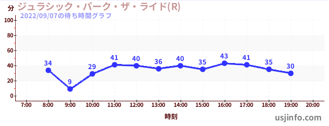 • ジュラシック・パーク・ザ・ライド(R)$B$N(B2022年09月07日の待ち時間