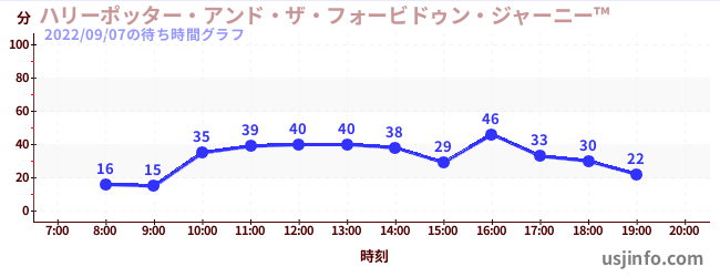 • ハリーポッター・アンド・ザ・フォービドゥン・ジャーニー™$B$N(B2022年09月07日の待ち時間
