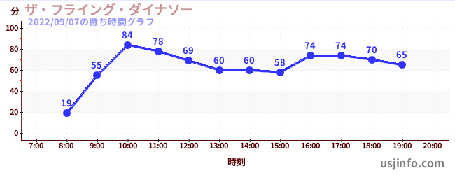 • ザ・フライング・ダイナソー$B$N(B2022年09月07日の待ち時間