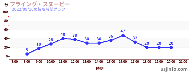 • フライング・スヌーピー$B$N(B2022年09月10日の待ち時間