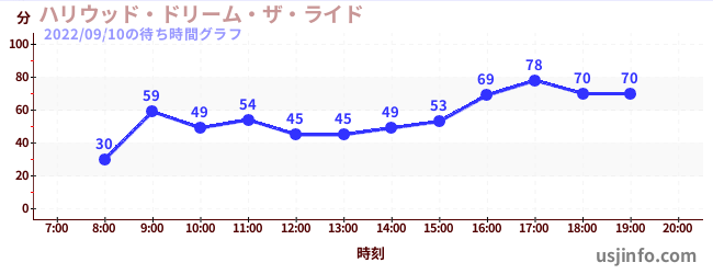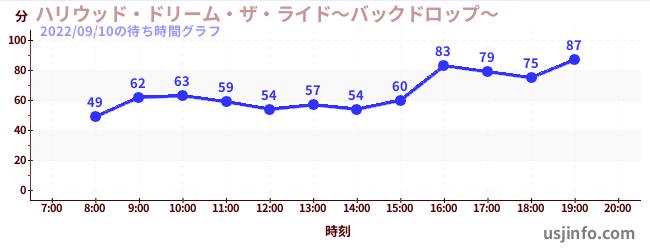• ハリウッド・ドリーム・ザ・ライド〜バックドロップ〜$B$N(B2022年09月10日の待ち時間