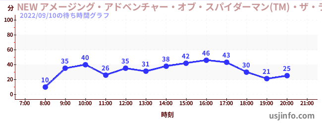 • NEW アメージング・アドベンチャー・オブ・スパイダーマン(TM)・ザ・ライド 4K3D$B$N(B2022年09月10日の待ち時間