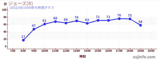 • ジョーズ(R)$B$N(B2022年09月10日の待ち時間