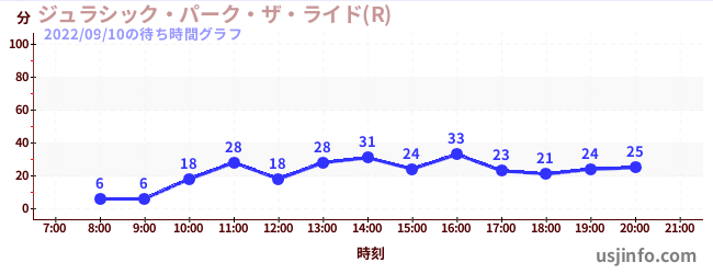 • ジュラシック・パーク・ザ・ライド(R)$B$N(B2022年09月10日の待ち時間