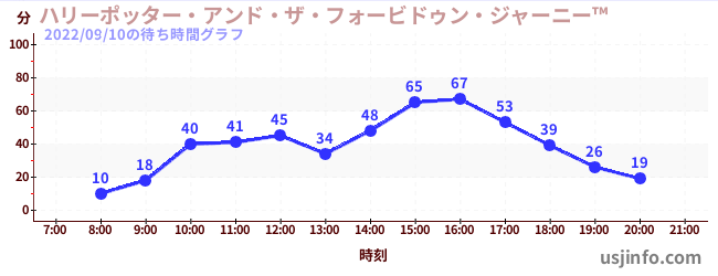 • ハリーポッター・アンド・ザ・フォービドゥン・ジャーニー™$B$N(B2022年09月10日の待ち時間