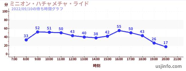 • ミニオン・ハチャメチャ・ライド$B$N(B2022年09月10日の待ち時間