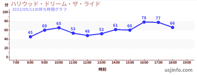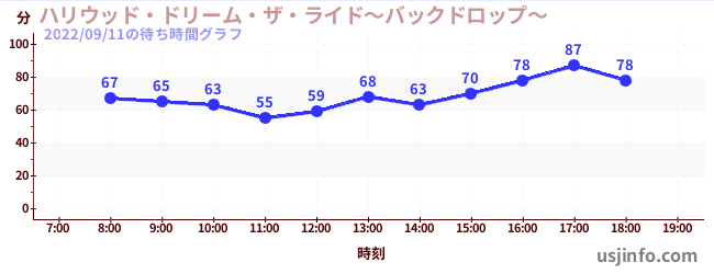 • ハリウッド・ドリーム・ザ・ライド〜バックドロップ〜$B$N(B2022年09月11日の待ち時間