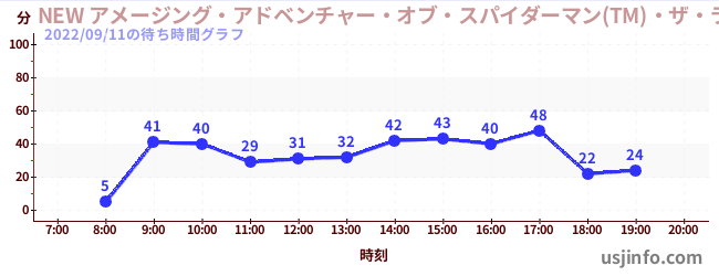• NEW アメージング・アドベンチャー・オブ・スパイダーマン(TM)・ザ・ライド 4K3D$B$N(B2022年09月11日の待ち時間