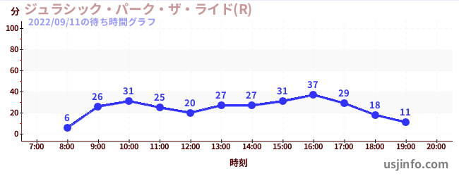 • ジョーズ(R)$B$N(B2022年09月11日の待ち時間