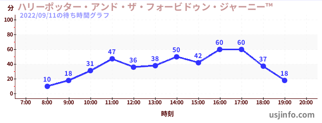 • ハリーポッター・アンド・ザ・フォービドゥン・ジャーニー™$B$N(B2022年09月11日の待ち時間