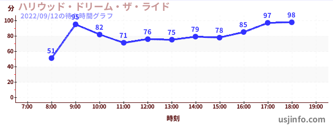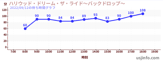 • ハリウッド・ドリーム・ザ・ライド〜バックドロップ〜$B$N(B2022年09月12日の待ち時間