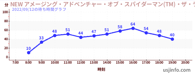 • NEW アメージング・アドベンチャー・オブ・スパイダーマン(TM)・ザ・ライド 4K3D$B$N(B2022年09月12日の待ち時間