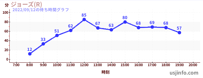 • ジョーズ(R)$B$N(B2022年09月12日の待ち時間